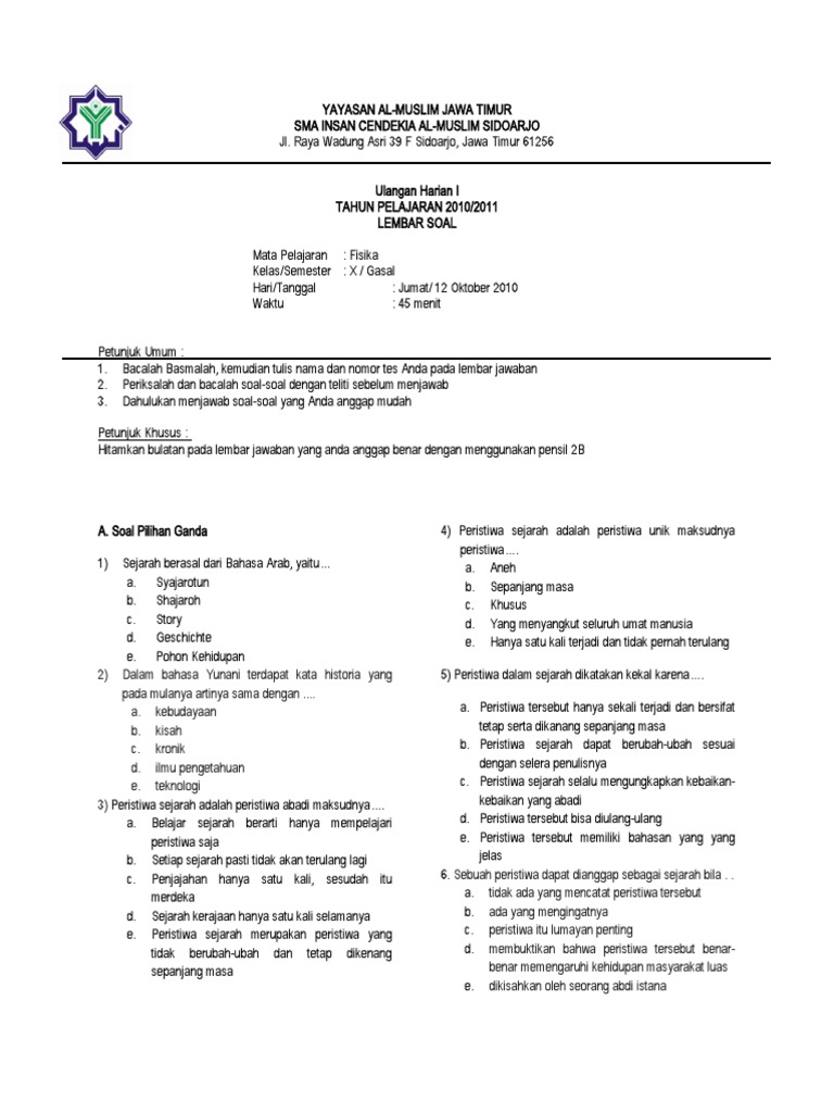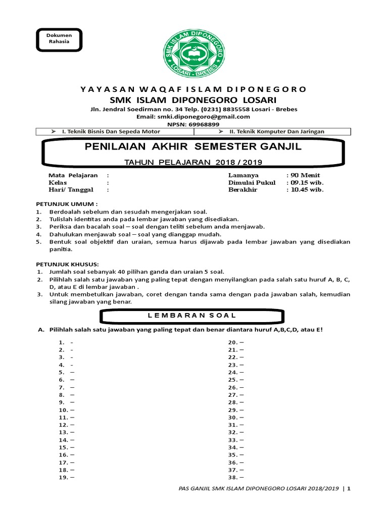 Contoh Lembar Soal Ulangan