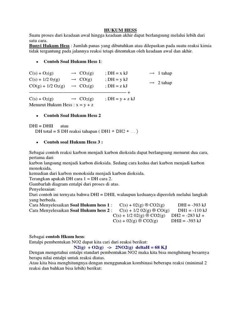 Contoh Soal Hukum Hess from imgv2-1-f.scribdassets.com Menurut hukum ini, karena perubahan entalpi merupakan fungsi keadaan maka perubahan reaksi. Pengertian hukum hess adalah sebuah hukum dalam kimia fisik untuk ekspansi hess dalam siklus hess. Suatu pegas memiliki suatu pertambahan panjang 0,25 meter sesudah diberikan gaya. Sebagai contoh reaksi karbon menjadi karbon dioksida dapat berlangsung menurut dua cara, pertama dari karbon langsung menjadi sebagai contoh hkum hess: