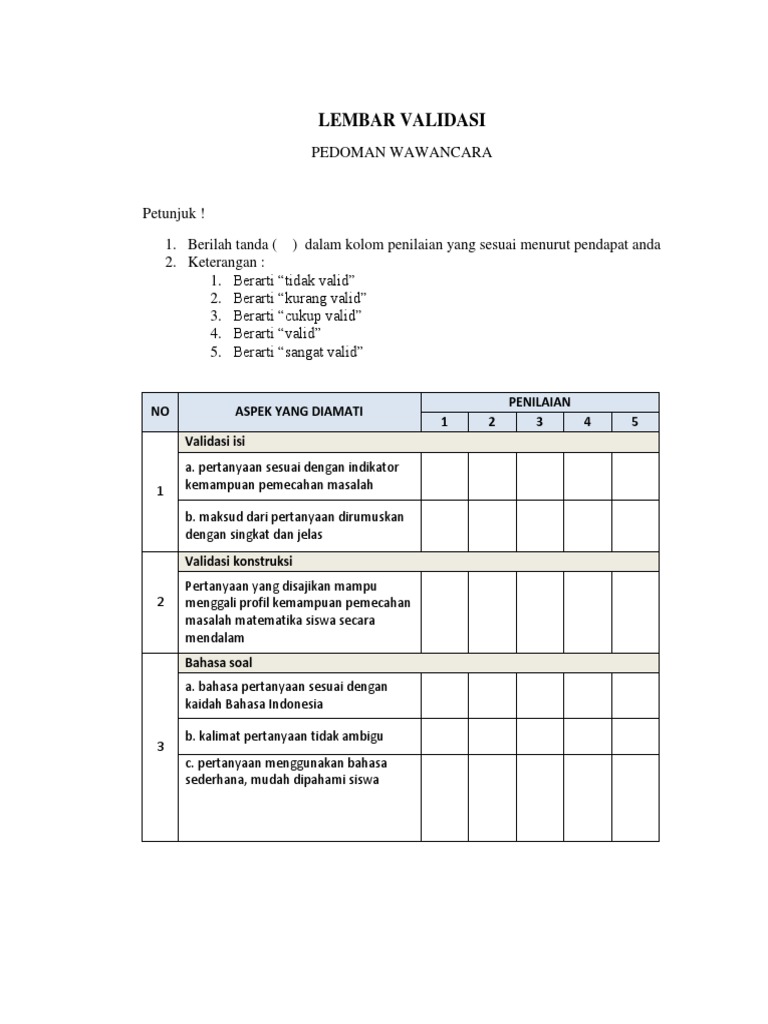 10+ Contoh Lembar Validasi Instrumen Soal Tes. 0809715007… text of lembar validasi 1benar.doc. Lembar validasi tes hasil belajar i.