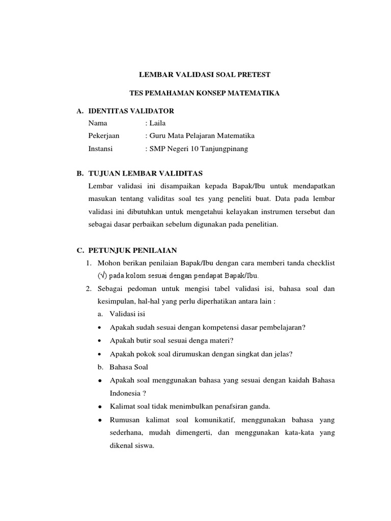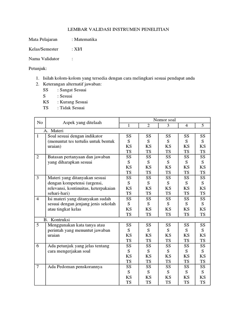 10+ Contoh Lembar Validasi Instrumen Soal Tes