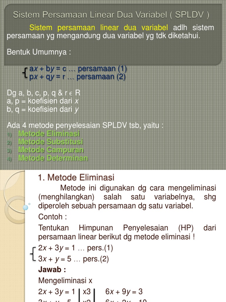 Spltv Soal Cerita Metode Gabungan Eliminasi Substitusi Youtube from i.ytimg.com Pada video ini dibahas cara menyelesaikan soal cerita spldv dengan metode campuran (eliminasi dan substitusi). Ada metode substitusi, metode eliminasi, atau juga metode campuran dirasa kurang tepat untuk menyelesaikan spltv. Metode campuran adalah metode hybrid (gabungan) dari metode eliminasi dan metode substitusi untuk mencari solusi persamaan bentuk aljabar. Pelajari lebih lanjut tentang spldv :