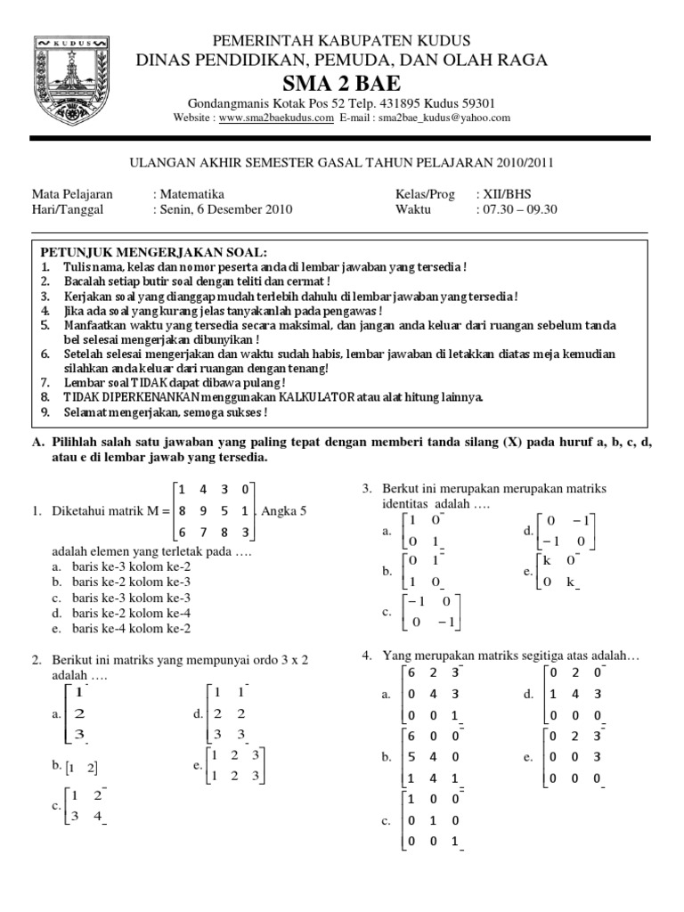 Contoh soal invers matriks ordo 2x2 contoh soal mean median modus data kelompok dan penyelesaiannya contoh soal tiu cpns 2019. Menentukan invers matriks ordo 2×2. Jika banyak baris matriks persegi a adalah n maka banyaknya kolom juga n, sehingga ordo matriks a adalah n × n. Invers matriks ordo 2 x 2. Sekarang, saya akan share bocoran soal tes masuk inomaret dengan jawabannya, yang bisa menjadi acuan dan pandangan anda, sebelum mendaftar. Berkut ini contoh soal tes masuk kerja indomaret/alfamart dan jawabannya, soal psikotes indomaret dan jawabannya agar lulus tes indomaret.