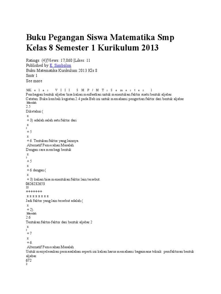 Koleksi soal Pembagian Aljabar Kelas 7 Kurikulum 2013. Next postmateri ppkn kelas 7 kurikulum 2013 revisi 2017. 3y x 5y = 15$y^2$.
