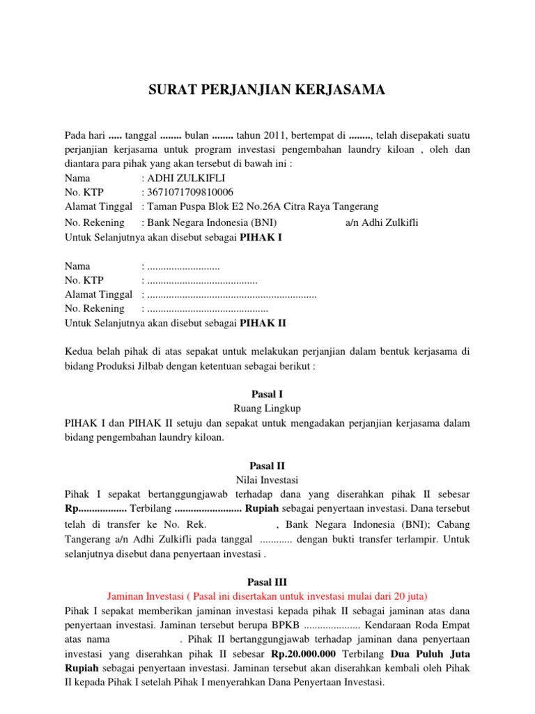 22+ Contoh Surat Perjanjian Kerjasama Usaha. Kerjasama yang satu ini sudah sangat sering dilakukan oleh para pelaku usaha. Contoh surat » surat perjanjian » contoh surat perjanjian kerjasama investasi modal usaha.