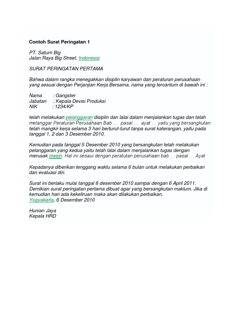 Contoh surat 2021 - Contoh Surat Peringatan Kerja